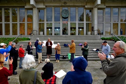 “In our country and in Santa Cruz County, is this a homeland security state where the government decides who is a terrorist, or who is a good citizen, or who is not even worthy of naming? Or is Santa Cruz County still under the Constitution that we think of as the lead legal document of our land, where people — even if they happen to be homeless — have certain civil rights, and even some human rights are acknowledged in our constitution, and even more clearly so in the state constitution.”