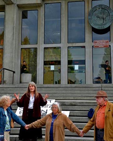 [dropcap]M[/dropcap]ore than two years after originally being cited for illegal lodging on the morning of August 10, 2010, during the Peacecamp demonstrations held to protest the sleeping ban that criminalizes homelessness in Santa Cruz, Linda Lemaster’s trial began on Nov. 6, 2012. After three days of listening to testimony, a jury found her guilty of lodging during Peacecamp, and on Dec. 6, 2012, Lemaster was sentenced to community service and probation by Judge Rebecca Connolly.