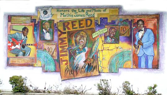 But in Leland, Miss., Jimmy Reed still lives on in the Highway 61 Blues Museum and his larger-than-life mural image still plays the blues in living color. One of the large outdoor murals is devoted exclusively to Jimmy Reed.