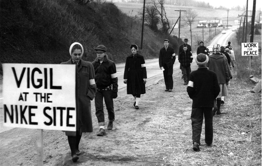 Hartsough: When I was 14, there was a Nike missile site near where I lived in Philadelphia. This was when people were hiding under their desks in school or going into air raid shelters to try to be safe when we had a nuclear war — which is absolutely ridiculous. So I organized other young people to have a vigil at this Nike missile site over Thanksgiving. We fasted and we walked around with our picket signs in front of the place, and that’s where my FBI record started.