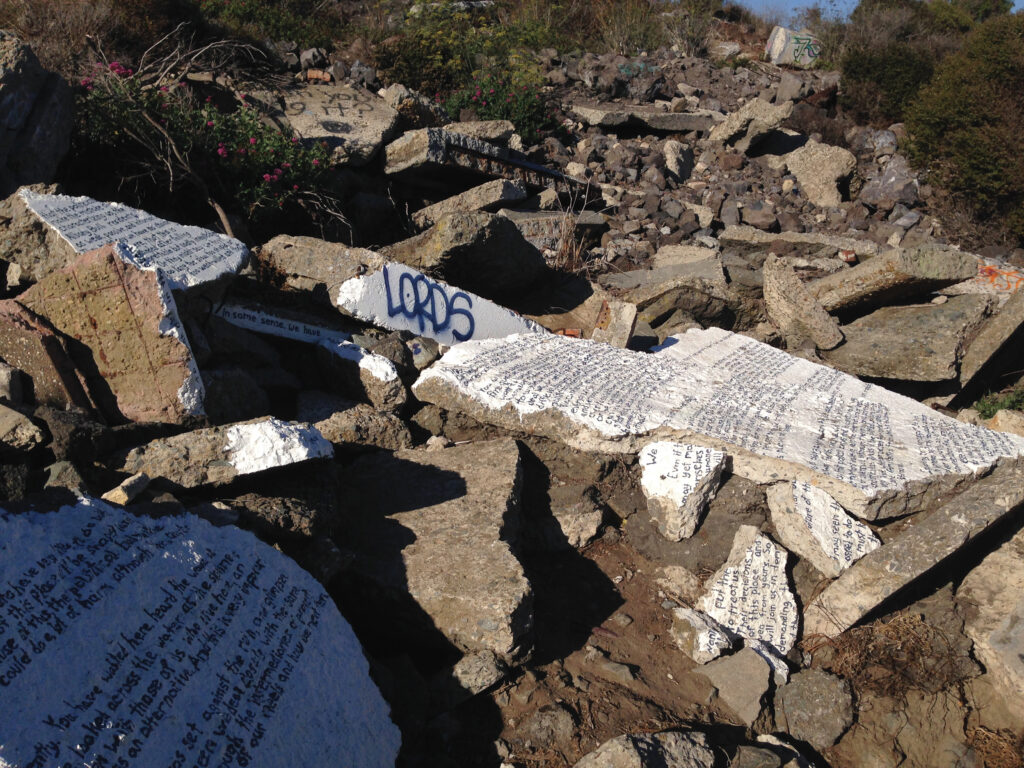 In 2013, a Bulb resident drafted a letter to visitors of the landfill, painting it on concrete slabs along the southern shoreline. The open-air treatise weathered with time, but has recently been amended.