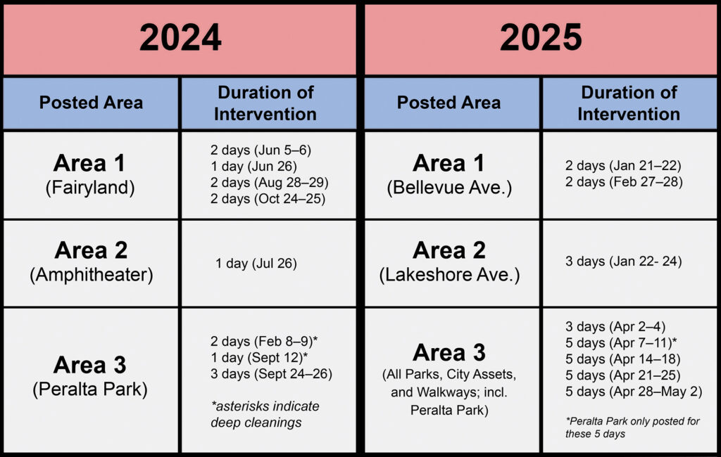 In 2019, Oakland enacted a zero-tolerance camping ban around the lake. The interventions that followed ranged from Deep Cleanings to Partial Closures.