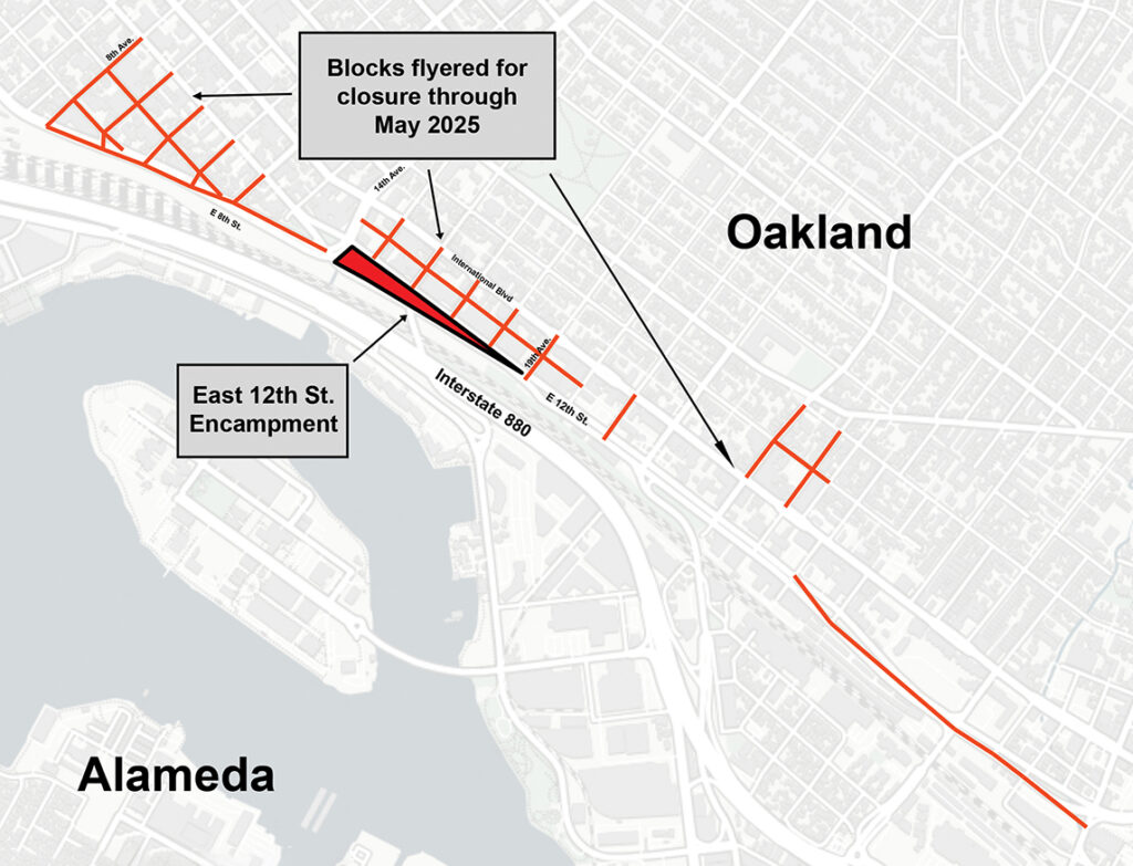 All of these encampments fall within “high-sensitivity areas” according to Oakland’s current Encampment Management Policy, which includes parks, major roadways, and residential or commercial corridors. The policy states that these places are prioritized for Full Closure to “prioritize maintaining the areas free of encampments.”
